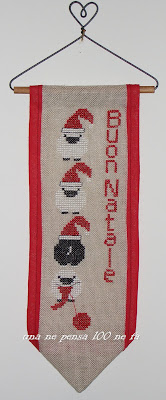 The banner with the sheep is a free of Joan, and I can find shcema here. The sheep were originally horizontal, but then hook having this at home so tender that I decided to use it to make a small banner sheep.